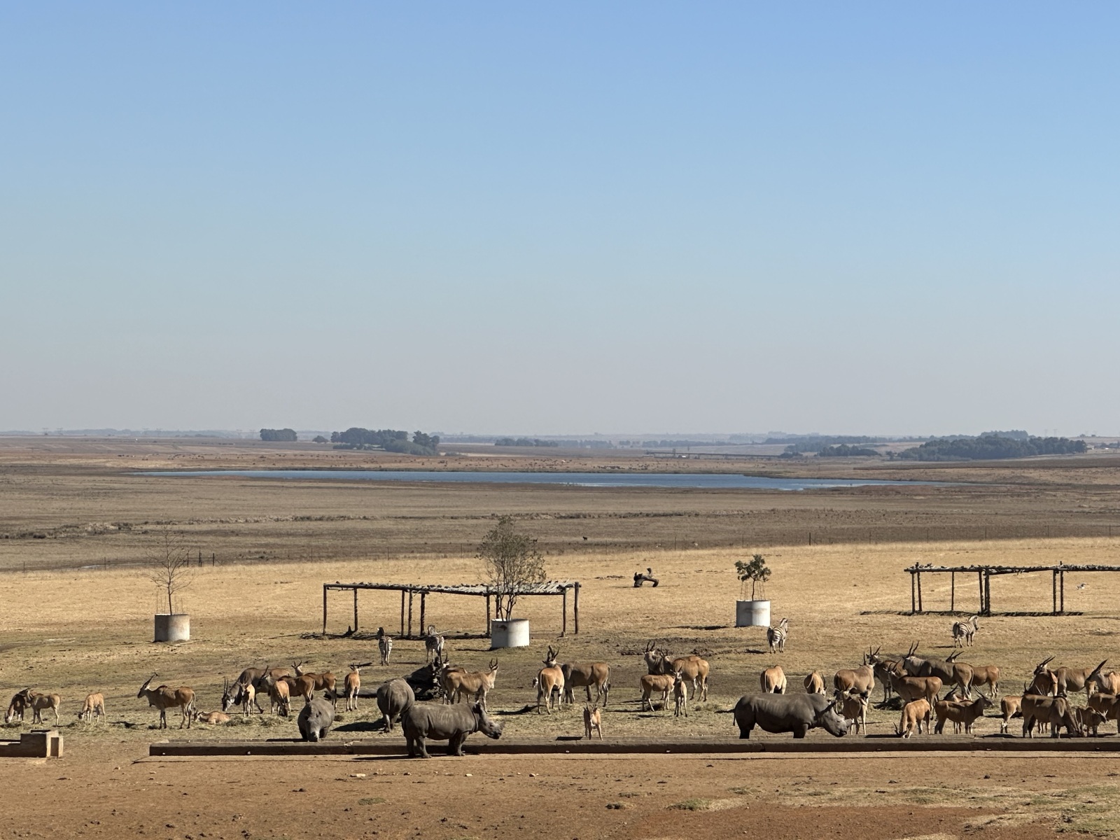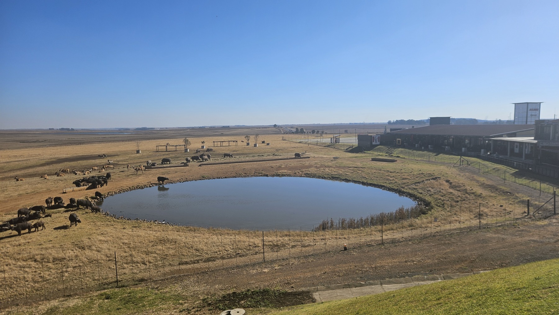 Za zastávku stojí velká benzínka Alzu. Je tu několik restaurací, rychle a dobře jsme se najedli v Apaloosa Spur (Spur je jihoafický řetězec steakovo-burgerových fastfoodů). Za benzínkou je terasa s výhledem na menší „zoo“ s pár desítkami zvířat, včetně nosorožců.