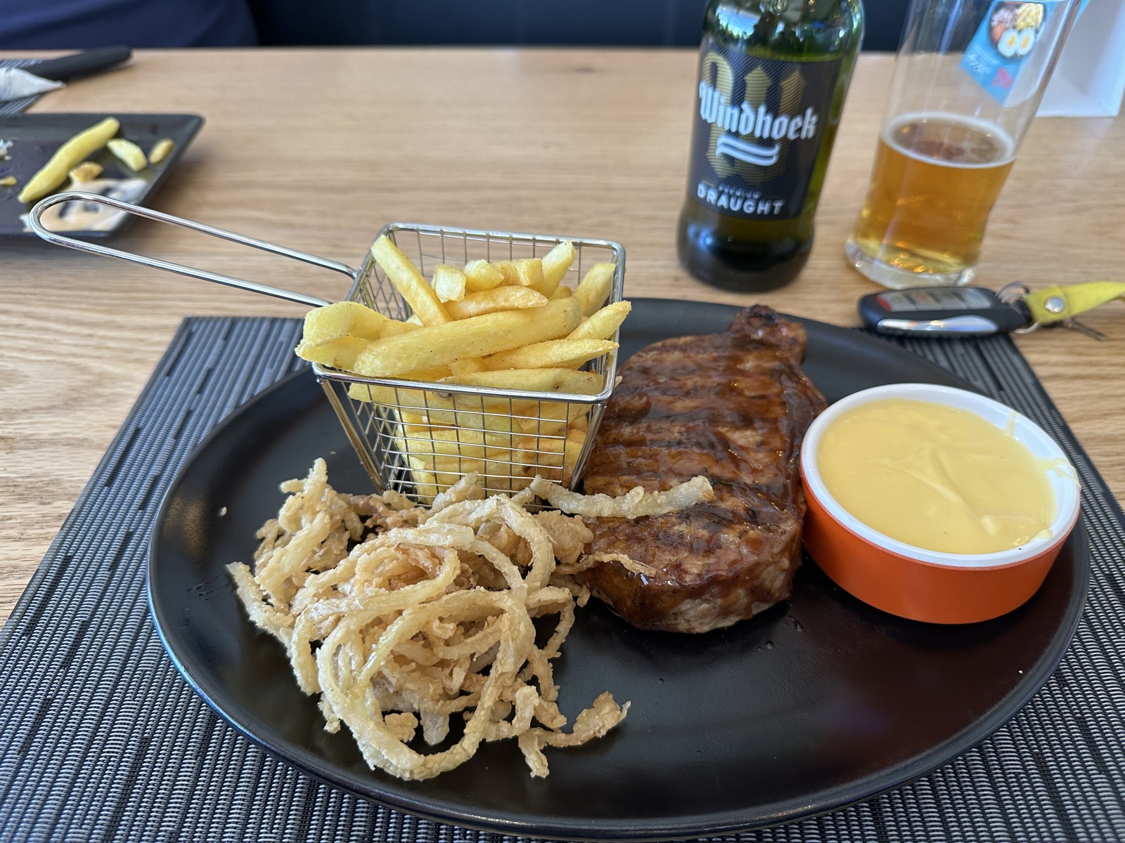 Pak už jen hotel, rychlé jídlo, pár piv a spát – ráno jsme chtěli vyrazit co nejdříve směr Krugerův Park.
