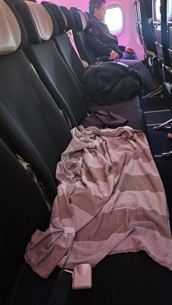 Cestou tam bylo letadlo na cca 10h dlouhém letu poloprázdné, všichni tři jsme měli sedadlo vedle sebe volné, já si zvládl obsadit celou čtyřku, takže jsme přiletěli relativně odpočatí. Zpátky jsme každý také alespoň dvousedačku pro sebe ulovili. Tady platí, že vzadu v letadle je zpravidla větší šance na více volných míst – vyplatí se tedy zvážit připlacení vybraného místa vzadu (jsou i levnější než vepředu).