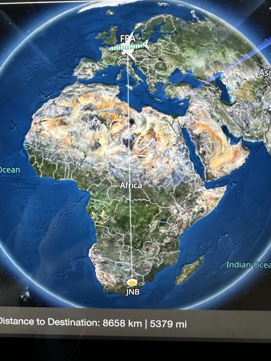 Lety na sebe krásně navazovali, na přstup bylo v obou směrech cca 90 minut. Let z Frankfurtu do Johanesburgu i zpět odlétal večer a přilétal ráno.