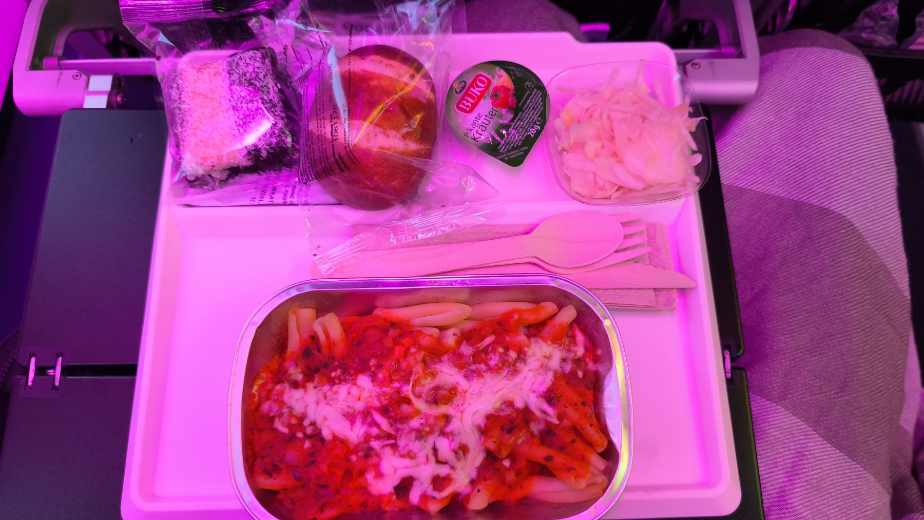 Condor je někde mezi lowcosty a normální aerolinkou. V základní ceně je jen malý baťůžek (ale příplatek za zavazadlo není extra vysoký), zdarma si nezvolíte sedačku ani při online checkinu (ale ani ten poplatek za obyč místo není moc vysoký), ale v ceně letu i v Economy je jídlo (jedna volba, ja měl vždycky s nimi nějaké těstoviny, neurazily) a nealko. Pivo už je za příplatek a v ceně je myslím u tarifu Economy Plus.