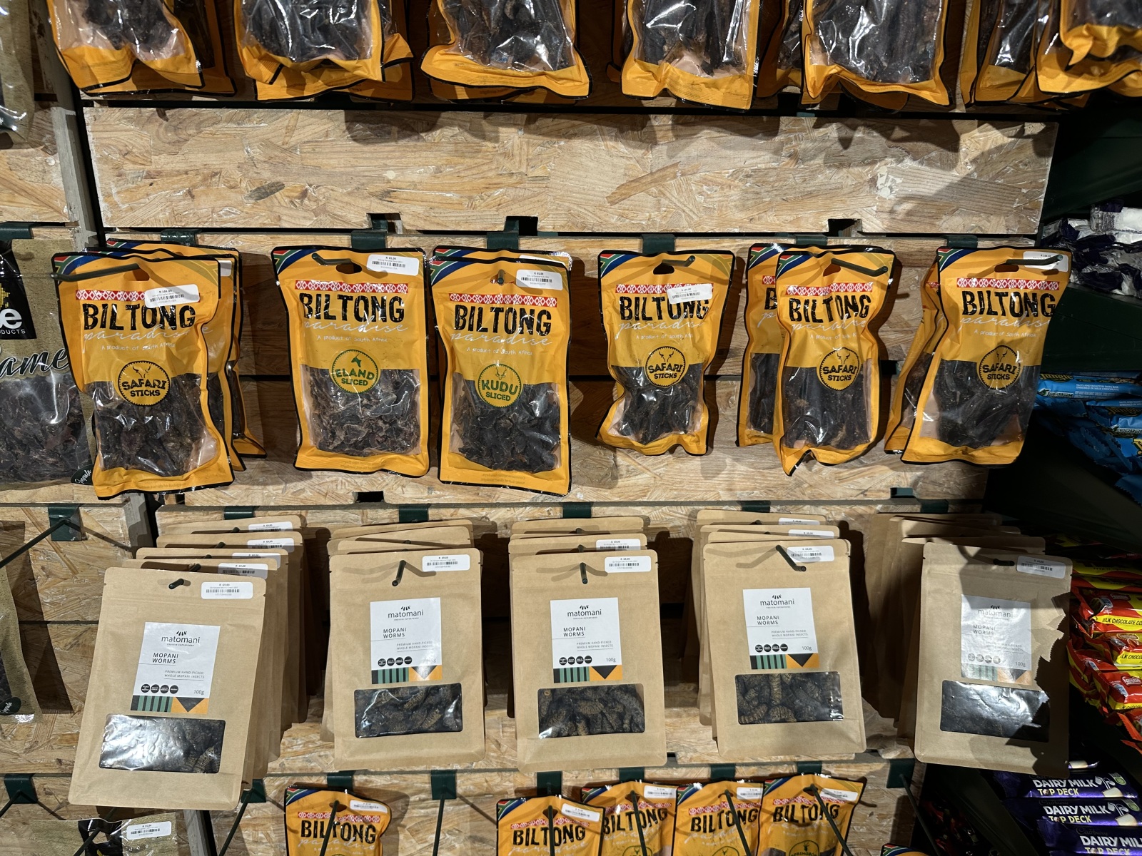 V Liquer store vedle Sparu se asi za 250 randů koupit kempingová lednička, docela šikovný pomocník ve vedrech v parku. Led do ní koupíte v JAR na každém rohu, včetně kempů v parku. Vedle je i obrovský čínský obchod „se vším“ – tam jsme – ovlivněni statistikami o zločinosti v JAR – pořidili asi za 50 Kč pepřový sprej. Ten jsme vozili ve dveřich řidiče a naštěstí nebyl potřeba.